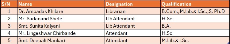 The College provides an opportunity for students by imparting higher education, which helps to bring intellectual and social parity. The College Library gives an opportunity to fulfill academic and intellectual aspirations of rural students. The Library operations are automated using SOUL 2.0 software. The Library had a collection of 51028 text books and reference books. In addition to its collection of thesis and reports are available in Library. It subscribes about 10 periodicals and 06 newspapers of state and national level both in Marathi and English.
